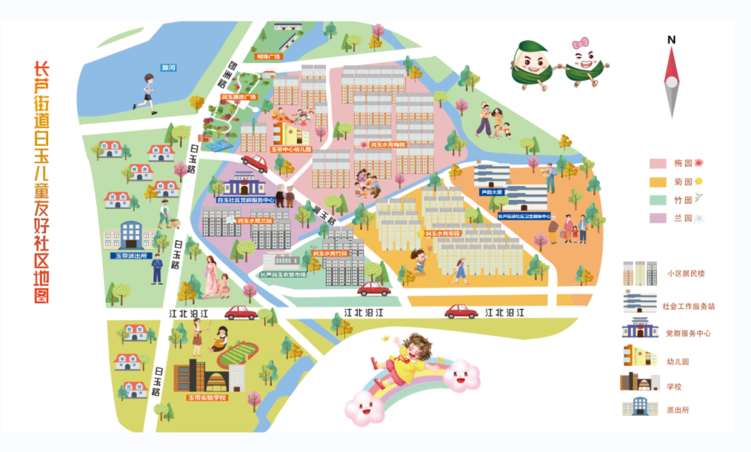 作为南京市第二批儿童友好社区,江北新区长芦街道白玉社区坚持“儿童优先”原则,着力打造“芦玉有爱”儿童友好品牌,围绕“一站两室三片区”的空间布局,从环境友好、服务友好、参与友好等方面,编织儿童成长“幸福摇篮”,托举美好未来。