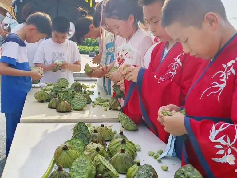 白玉社区挖掘辖区阵地资源优势,以张庄组“百亩荷塘”为活动阵地,围绕“荷”主题开展户外研学活动。通过剥莲子大赛、共读“爱莲说”等环节,让儿童在实践中获得真知、拓宽视野。暑假期间,白玉社区积极链接资源,精心安排儿童友好系列夏令营等活动。